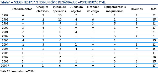 Existe uma matéria da Revista Téchne, da Editora Pini, que aborda a segurança na construção civil com índices de acidentes em casa um dos setores.