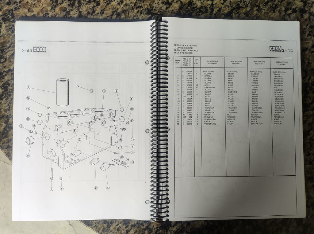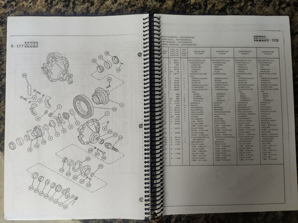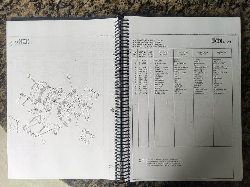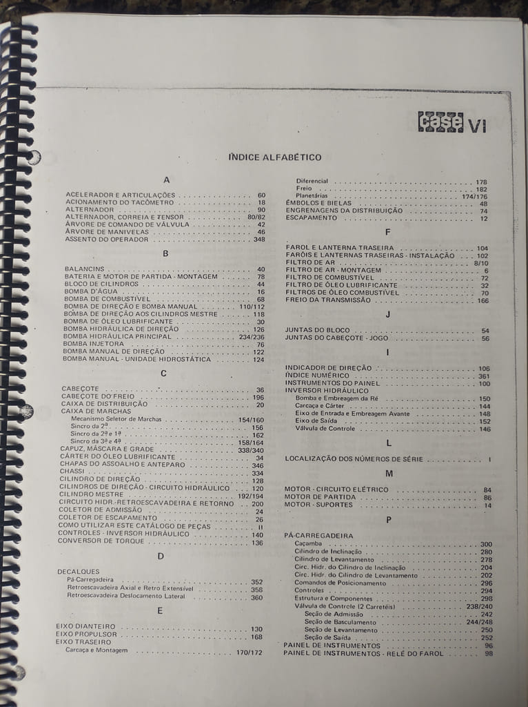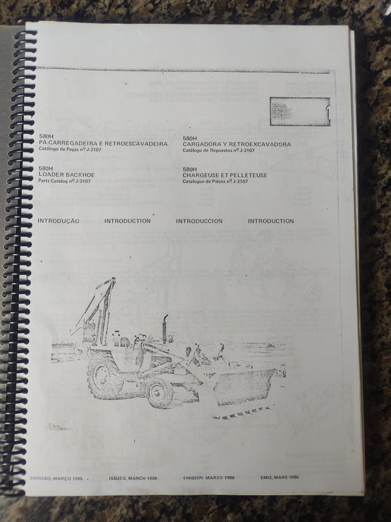 Catálogo de peças impresso e encadernado da retroescavadeira Case 580H (ano aprox. 1988).